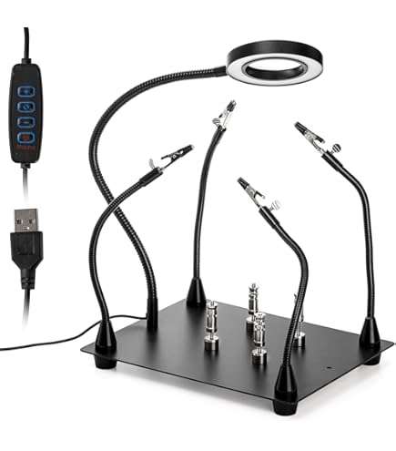 Magnetic Helping Hands Soldering Station with an 11.1 x 7.1 Inch Larger Base, 5X LED Magnifying Lamp, 4 PCB Circuit Board Holder & 4 Flexible Magnetic Helping Hands