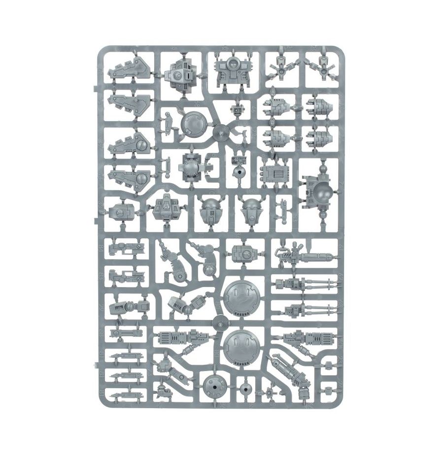 This multi-part plastic kit contains everything needed to build three XV8 Crisis Battlesuits, with six accompanying drones. There’s an impressive level of customisation available, with ball fittings allowing unprecedented posability. One miniature can be optionally assembled as a Shas’vre, with a special head and chest plate, and there’s a prodigious amount of advanced T’au weaponry in the box: four plasma rifles, three flamers, four fusion blasters, four burst cannons, three missile pods and three shield generators. The accompanying drones have options for gun, shield or marker variants, and you can build a total of six drones, with up to three of any one type. The kit also includes an assortment of battlesuit electronics systems. One model in the kit can even be built as the new, experimental Iridium-class XV8-02 Crisis Battlesuit – distinguishable by its thicker armour and aggressive appearance. Huge variety!