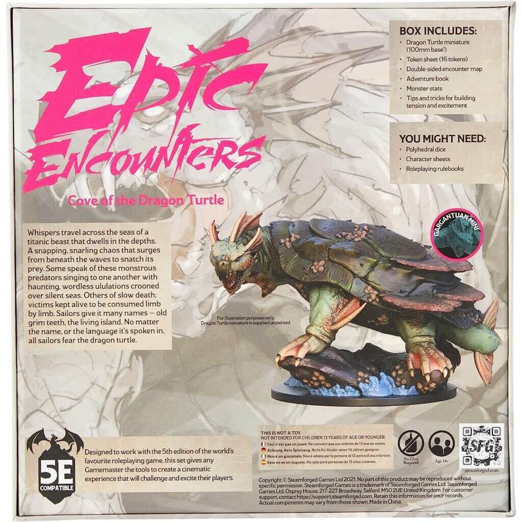 Pit your roleplaying group against a titanic dragon turtle with this Epic Encounters boss box! Compatible with fifth edition or any fantasy roleplaying game.
